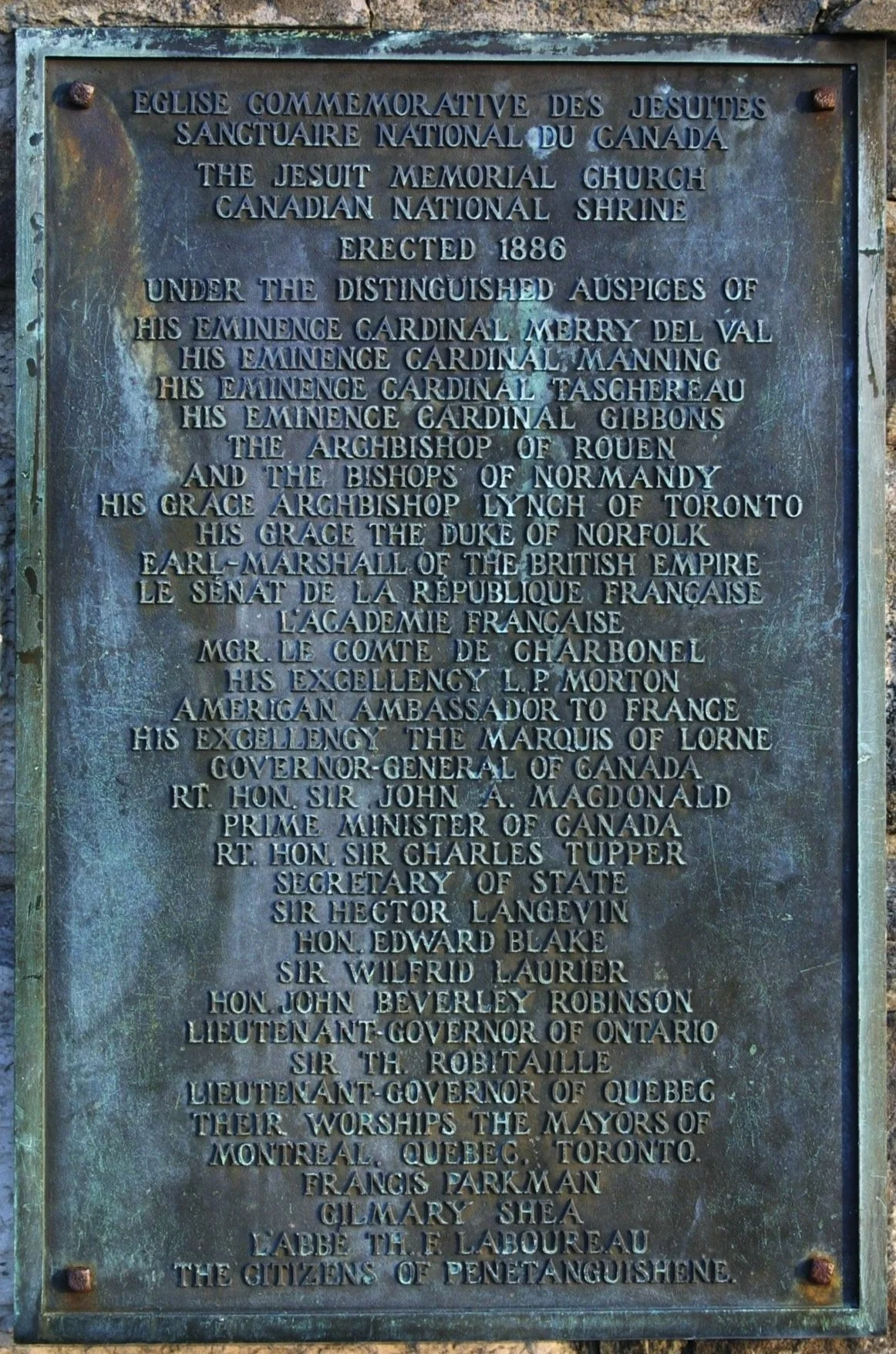 The large and impressive plaque of contributors, a veritable who’s who in the world in 1902, in front of St. Anne’s.