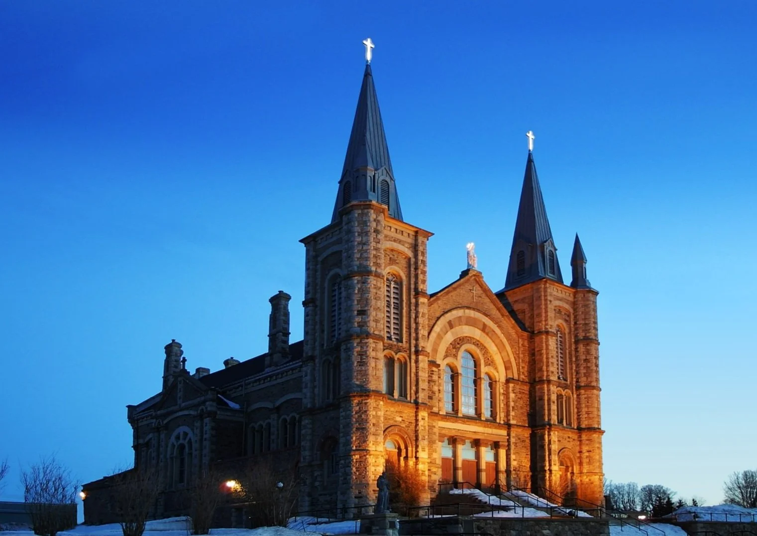 It is early morning on Georgian Bay and the bells sound out over the town and area, signaling the eight a.m. start of another day. Located high in the majestic spires of this, “Cathedral of the North,” the three giant bells cast in France, echo a grander, historic time, a time when this church was significant, and a National Shrine.
